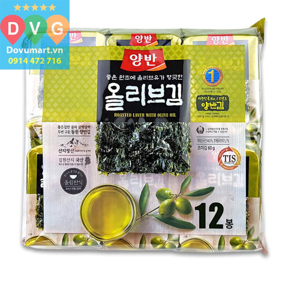 Bịch 12 Gói Lá Kim Ăn Liền Vị Dầu Oliu Dongwon Hàn Quốc (5g/gói) - Hương Vị Độc Đáo và Bổ Dưỡng Từ Lá Kim Hàn Quốc