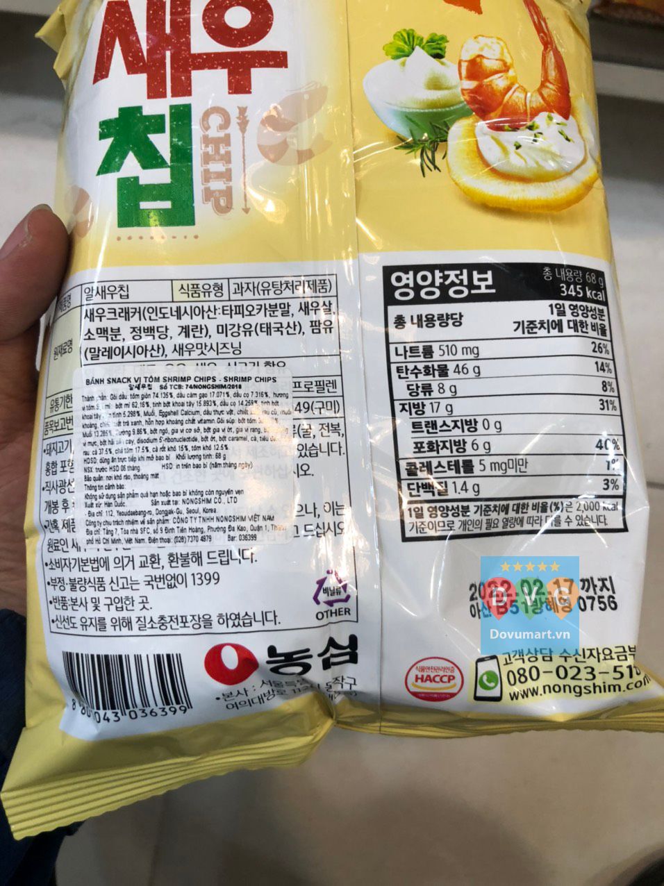 Bim bim Tôm Thịt Nongshim Hàn Quốc 68g / 농심) 알새우칩 68g 8801043036399