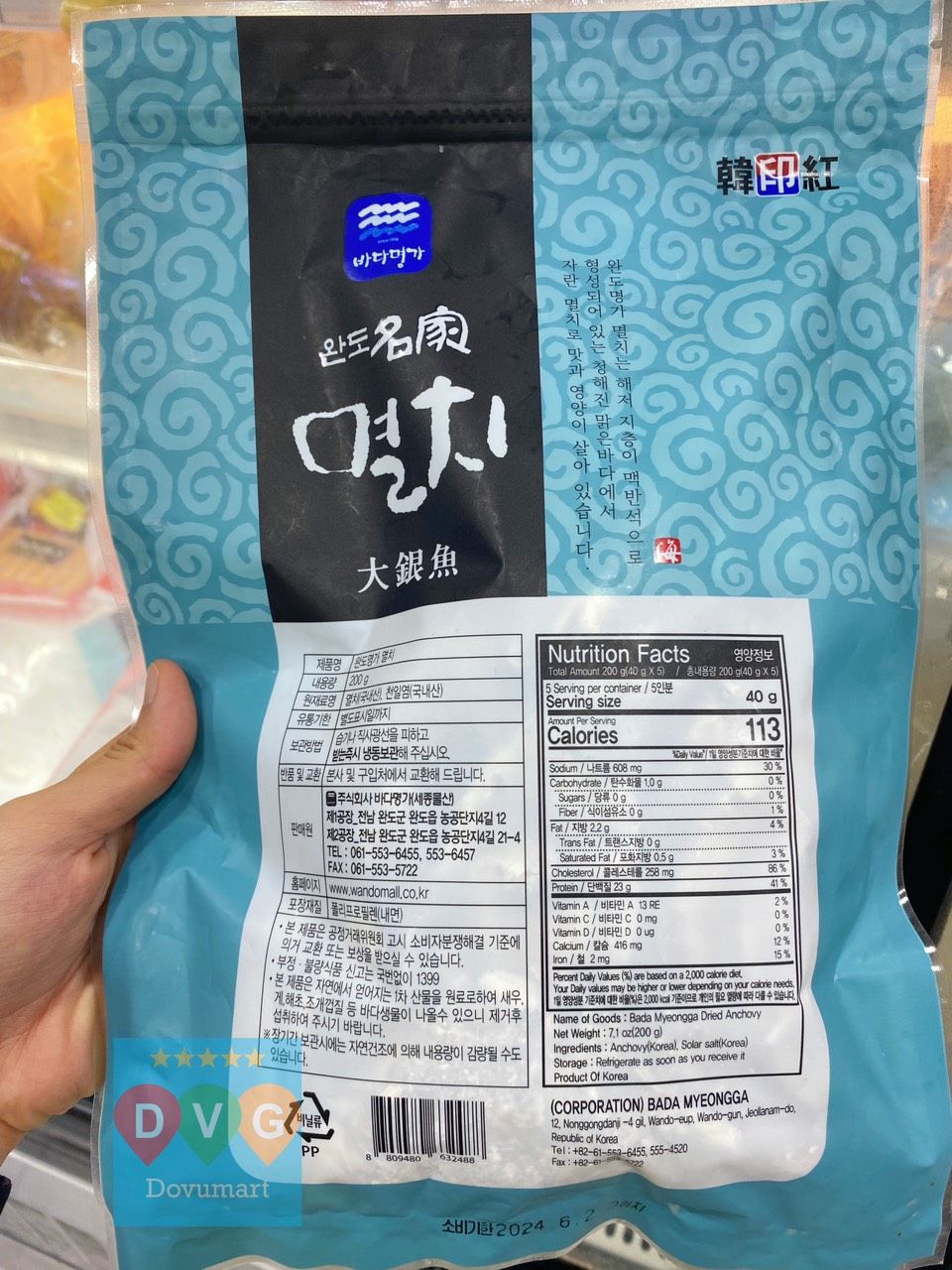 - Tên sản phẩm: Cá Cơm Loại Lớn (Size Lớn) Wando Hàn Quốc Gói 200G