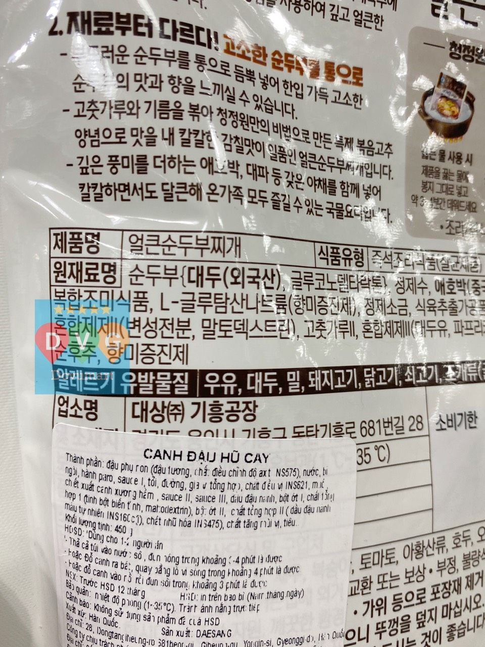 Chào mừng bạn đến với Dovumart! Hôm nay, chúng tôi hân hạnh giới thiệu đến bạn một sản phẩm độc đáo và hấp dẫn từ Hàn Quốc - Canh Đậu Hũ Cay Ăn Liền Daesang 450G (대상 호밍스 얼큰순두부찌개).