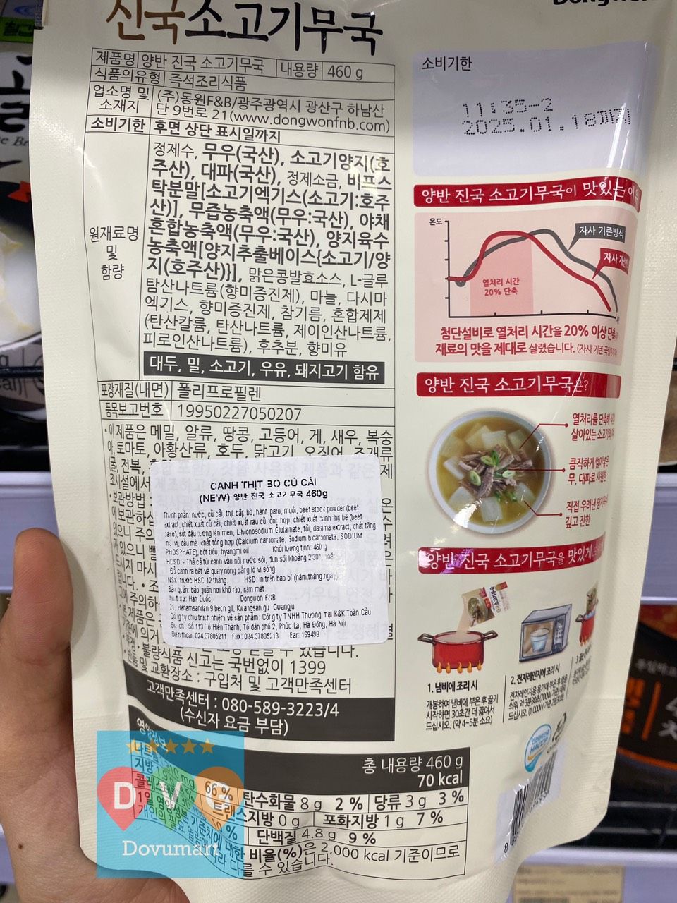 🇰🇷 Chuẩn vị Hàn Quốc: Được sản xuất và đóng gói tại Hàn Quốc, canh thịt bò củ cải của Dongwon đảm bảo hương vị chân thật, đúng chuẩn món ăn truyền thống Hàn Quốc.