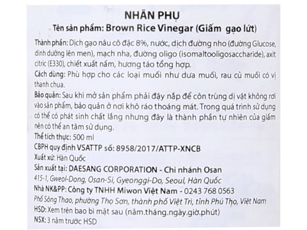 Daesang Giấm gạo lứt Chung Jung One chai 500ml - Nhập Khẩu Hàn Quốc