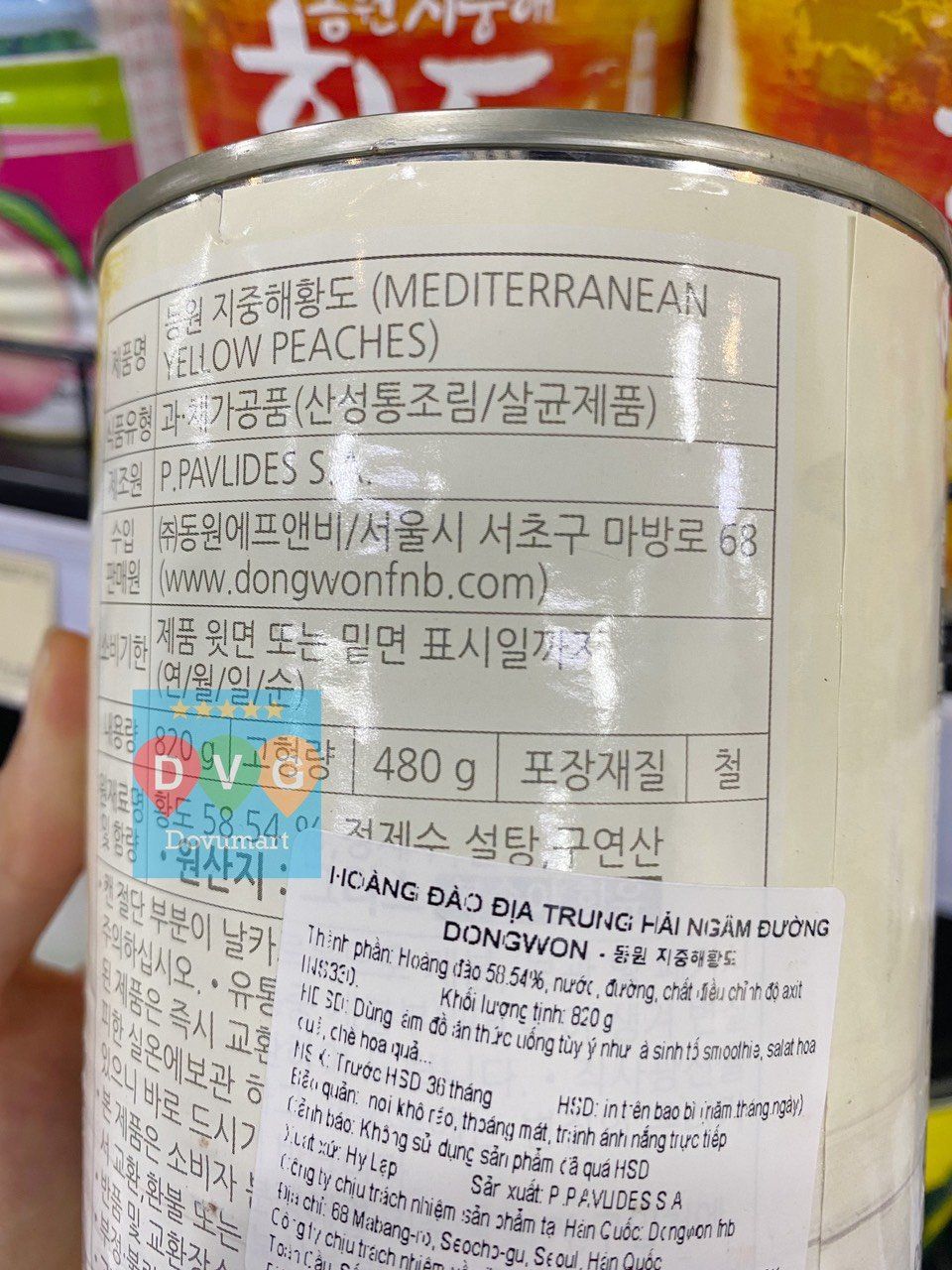 Đào Vàng Ngâm Đường Dongwon Hàn Quốc Hộp 820G / 동원) 황금 복숭아 820G