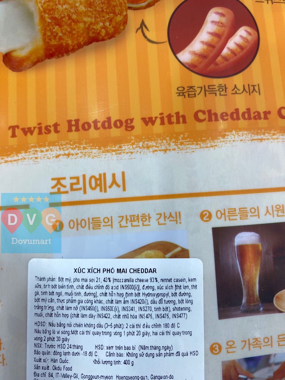 - Tên sản phẩm: Hotdog Xoắn Phô Mai Cheddar Hàn Quốc (옥두식품) 트위스트 핫도그 체다치즈