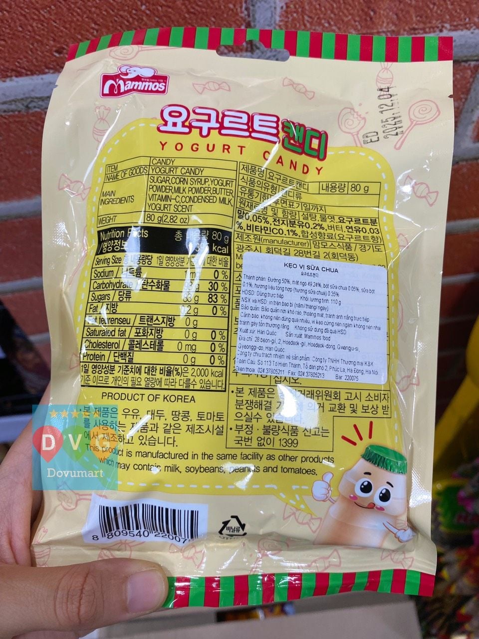 - Tên sản phẩm: Kẹo Vị Sữa Chua Mammos Hàn Quốc Gói 80g