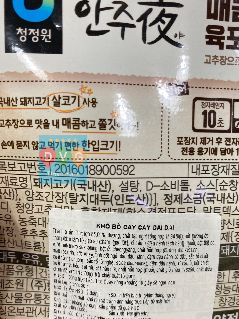 - Tên sản phẩm: Khô Bò (Thịt Bò Khô) Cay Cay Dai Dai Daesang Hàn Quốc Gói 30G