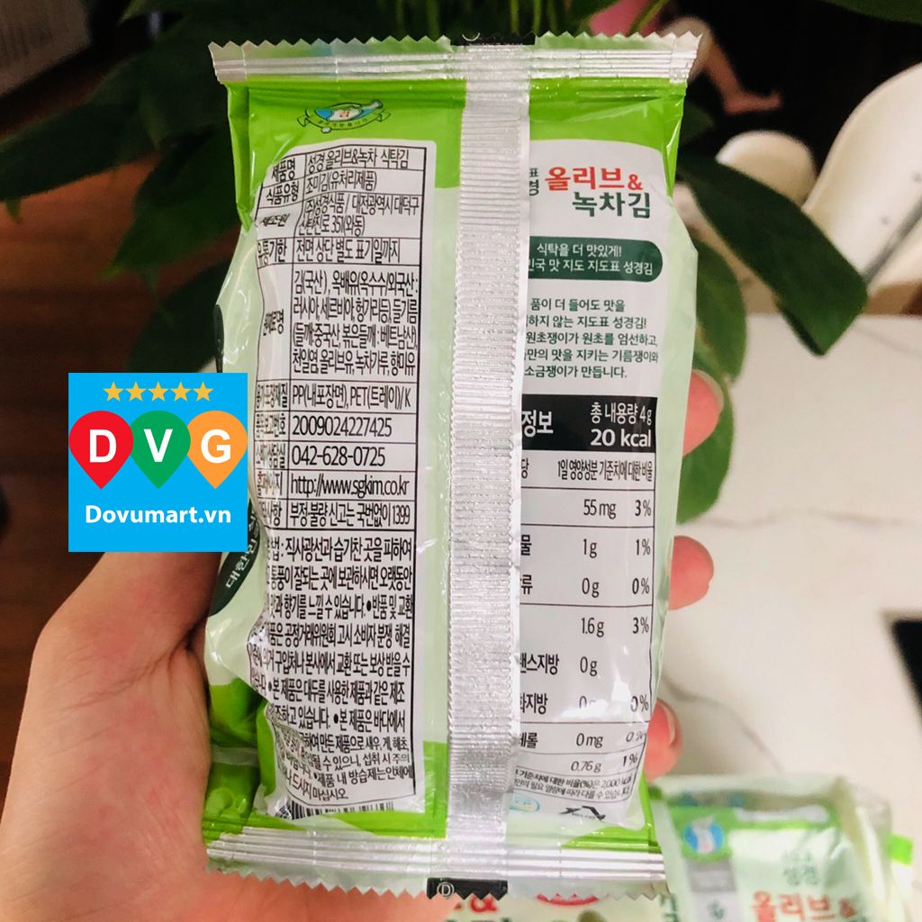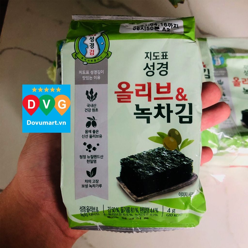 Lá Kim Ăn Liền Vị Trà Xanh Và Oliu Hàn Quốc Sung Gyung 36g (4g x 9 gói)