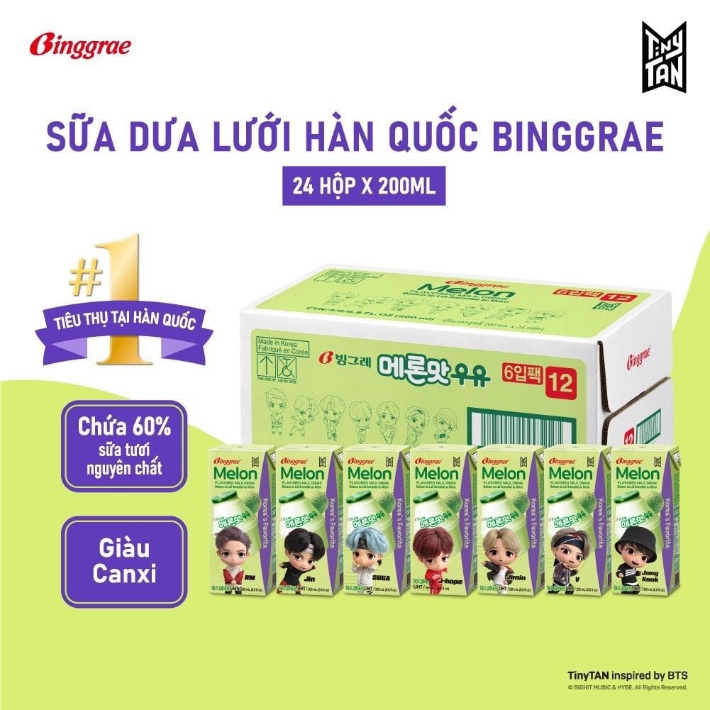 - Tên Sản Phẩm: Lốc 6 Hộp Sữa Tươi Binggrae Hương Dưa Gang Hàn Quốc 200ml
