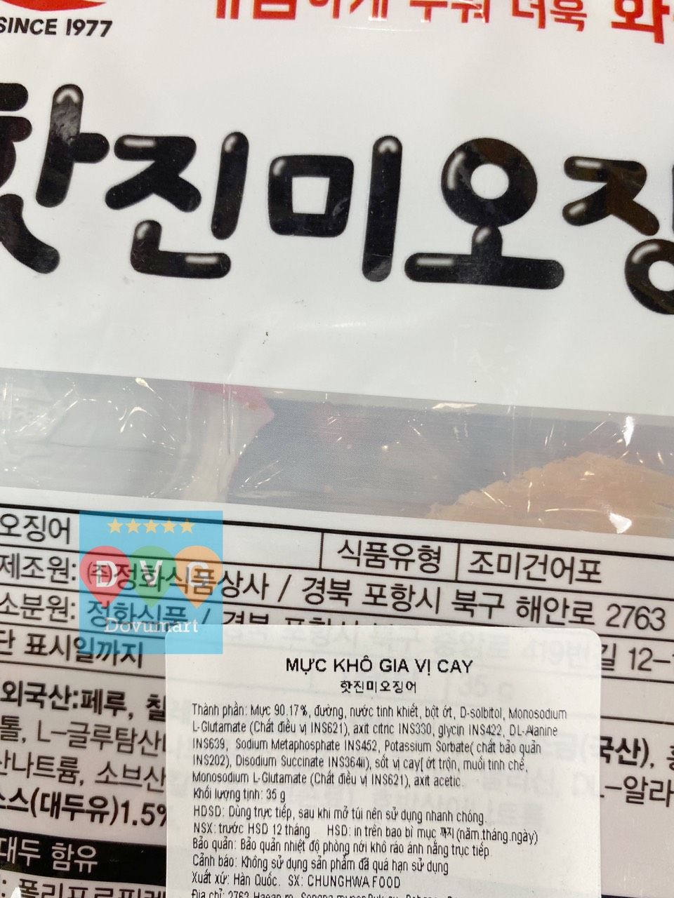#MựcKhôCay #ĐồĂnLiềnHànQuốc #Jeonghwa #SnackHànQuốc #Dovumart #MónĂnVặt #ĐồĂnNhẹ #HảiSảnKhô #ĂnLiền #Bulgogi