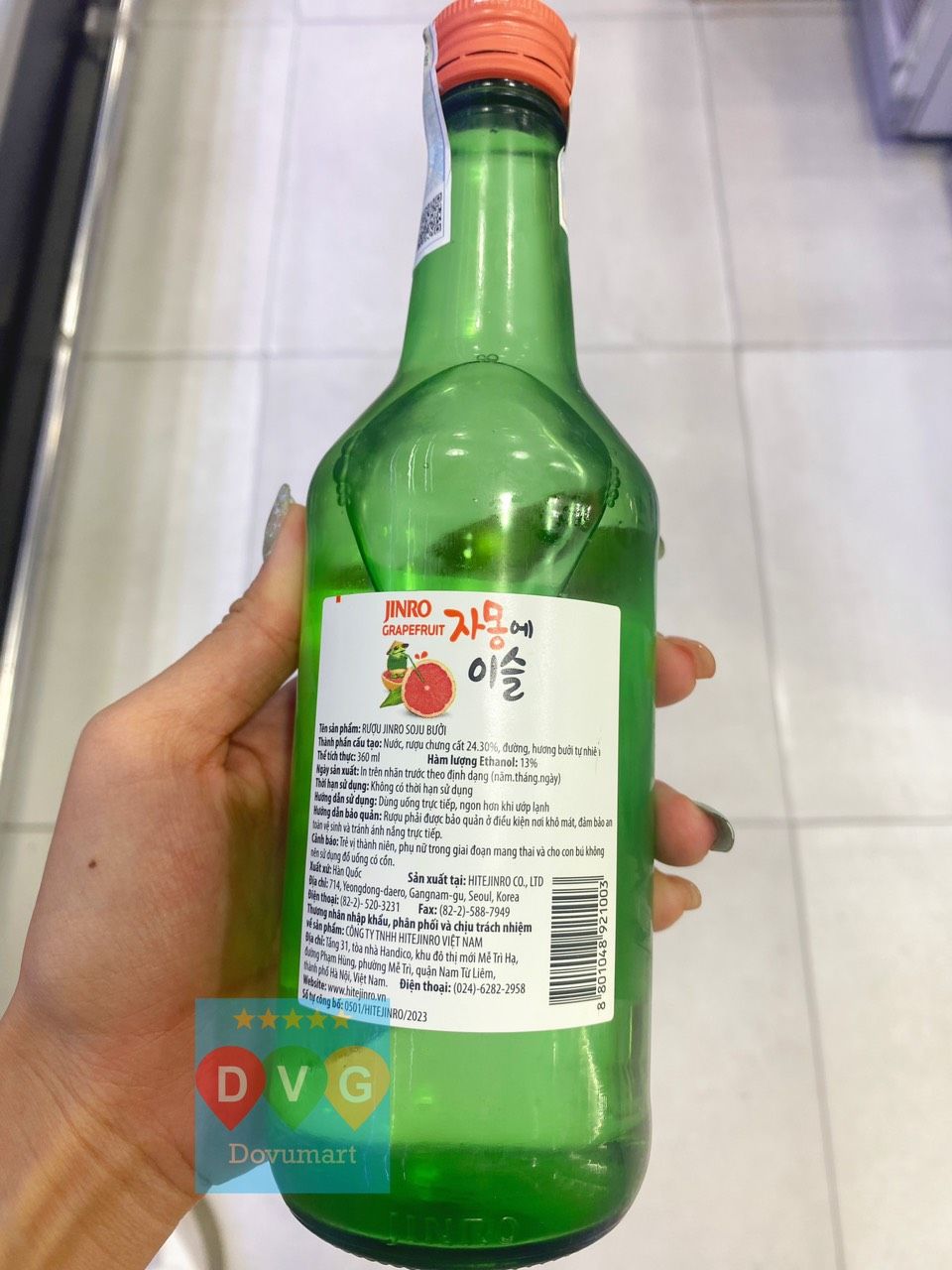 - Tên sản phẩm: Rượu Soju Bưởi Jinro Hàn Quốc Chai 360ML