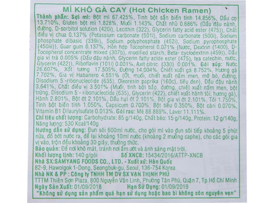 Thùng 40 gói Mì Gà Xào Cay Hàn Quốc Gói 140 gam
